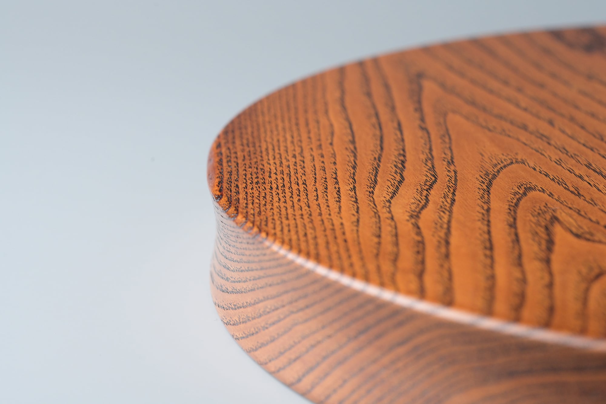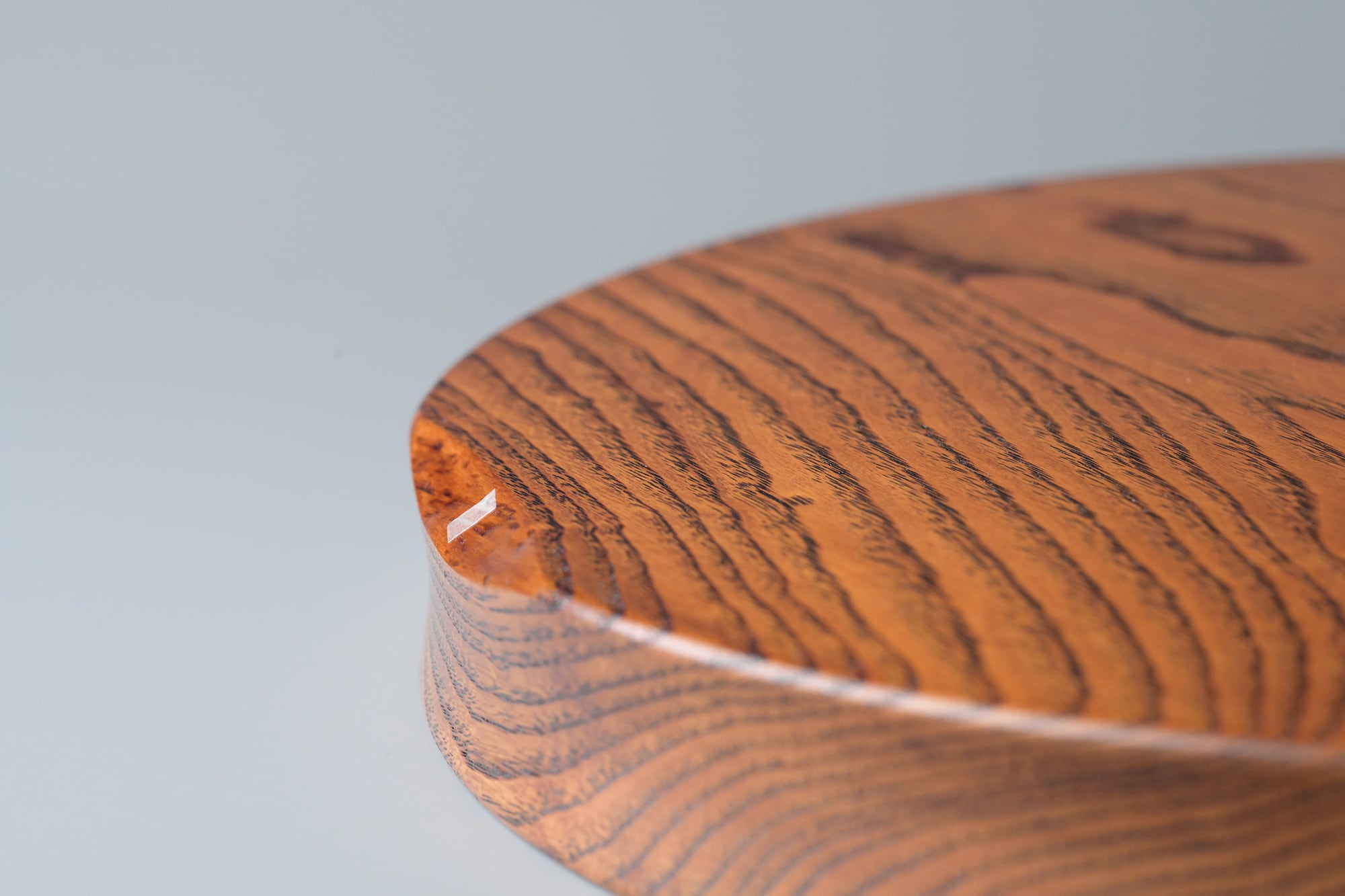 木目が強い分、漆の仕上げにピンホールのような小さな穴がありますが