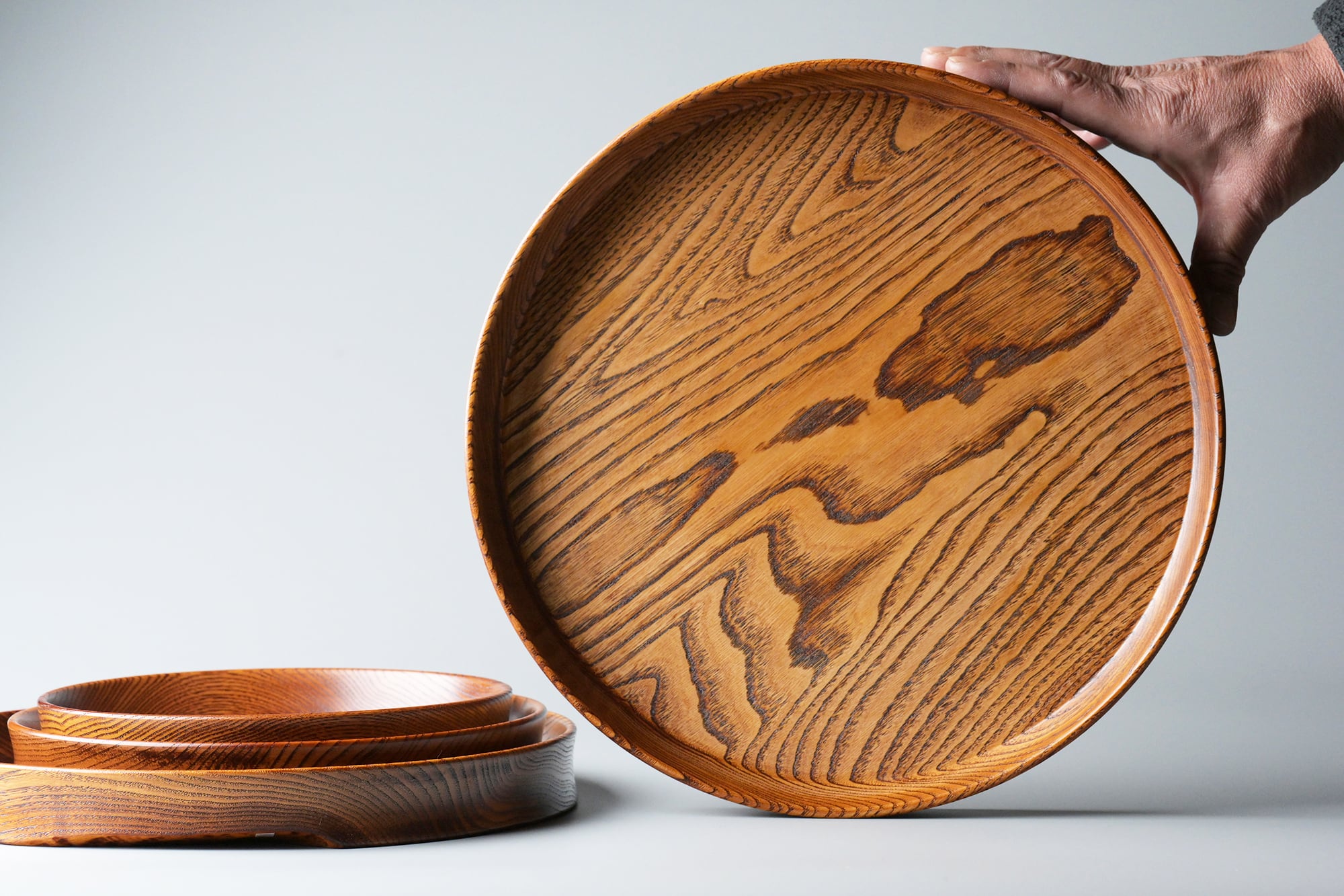 木目の強い栗を使用した盆。