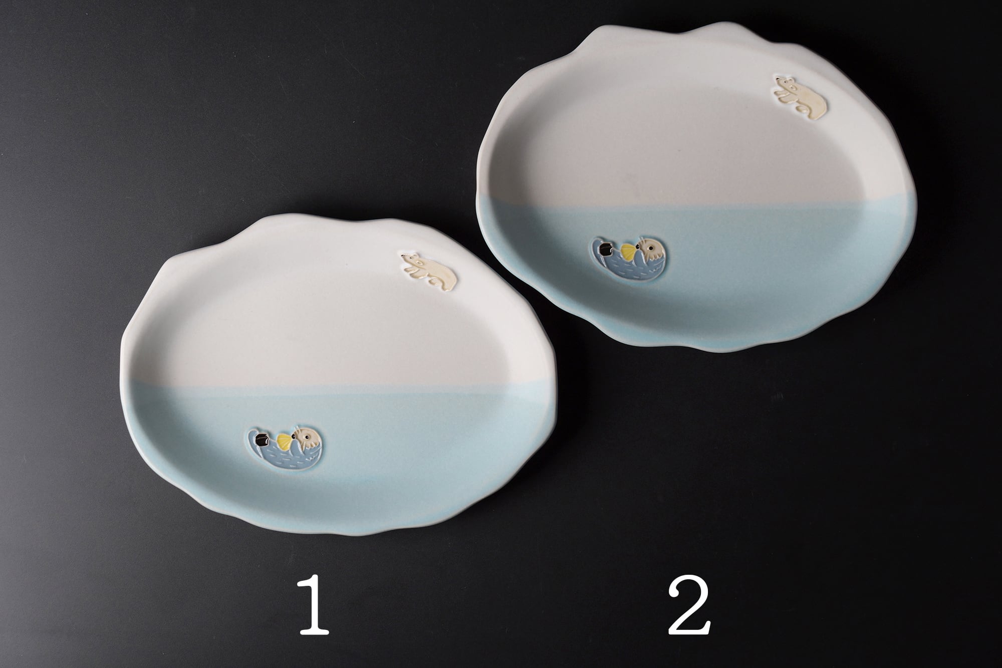 下永久美子 シロクマとラッコのオーバルプレート 8