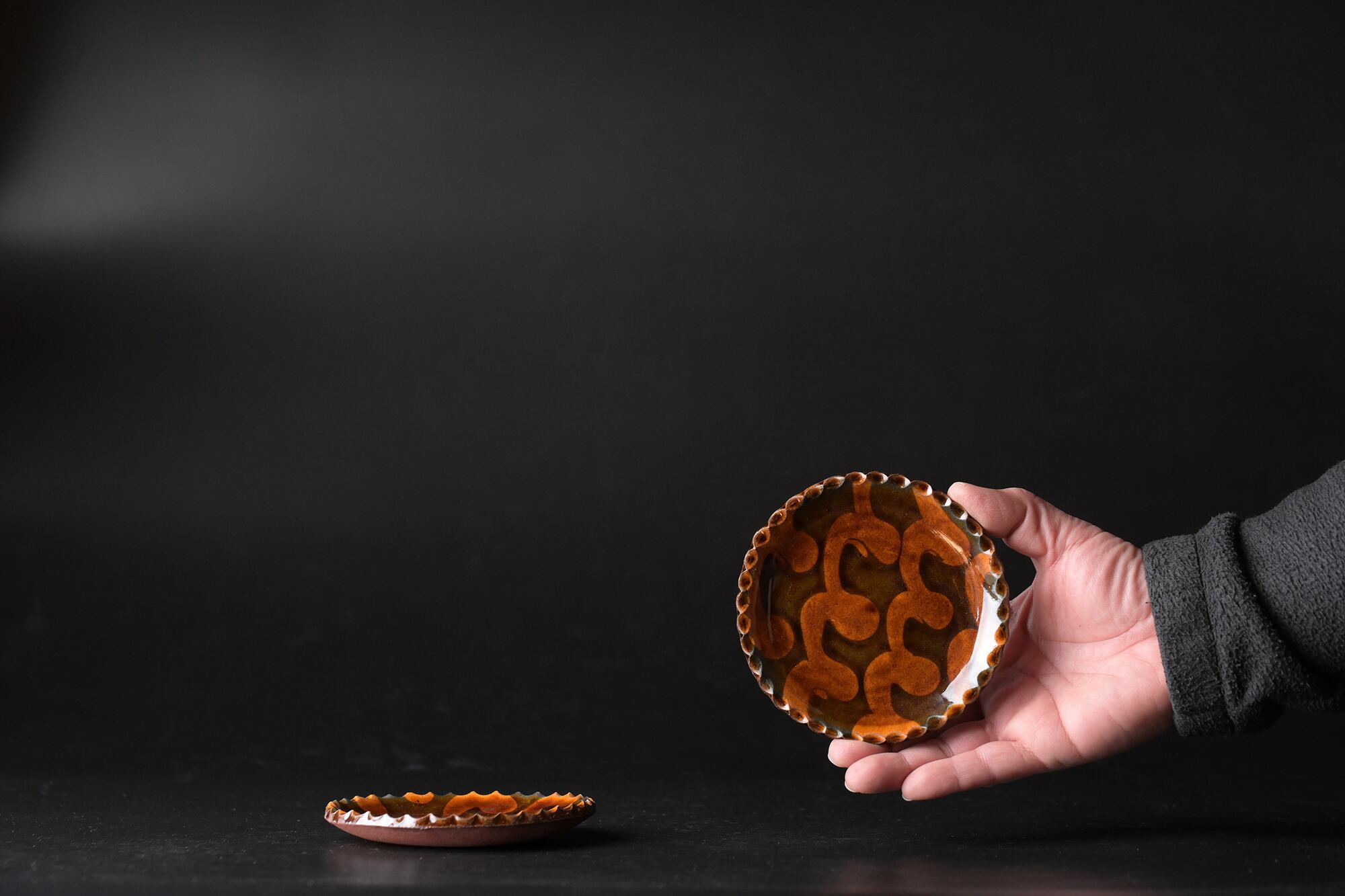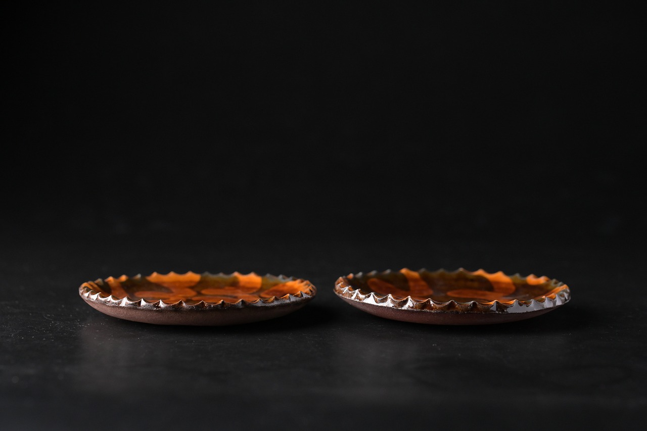黒星釉と合わせた枯色線紋のコントラストも素敵です。