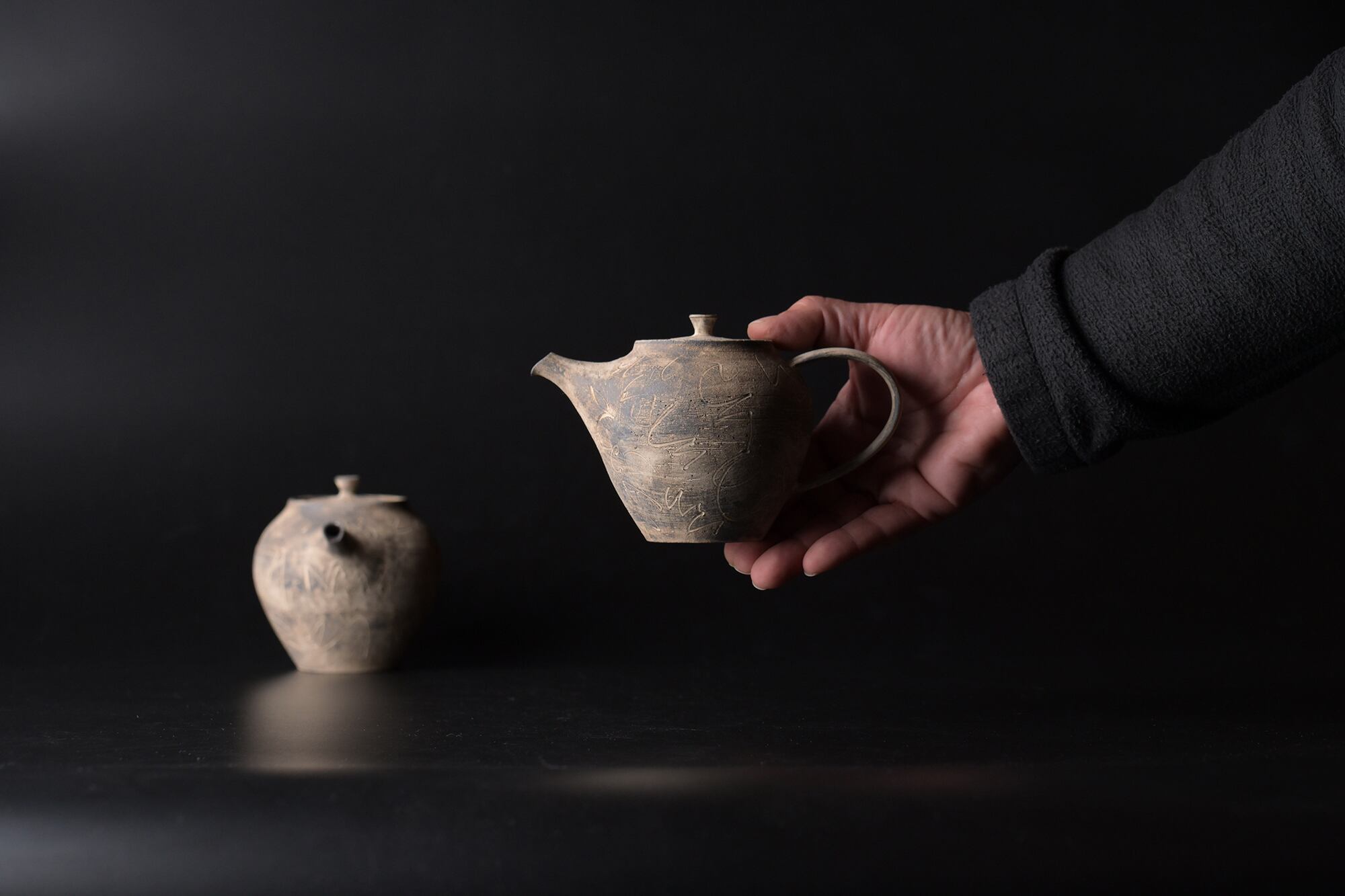中島智靖 枯色 線紋 ティーポット 22-1