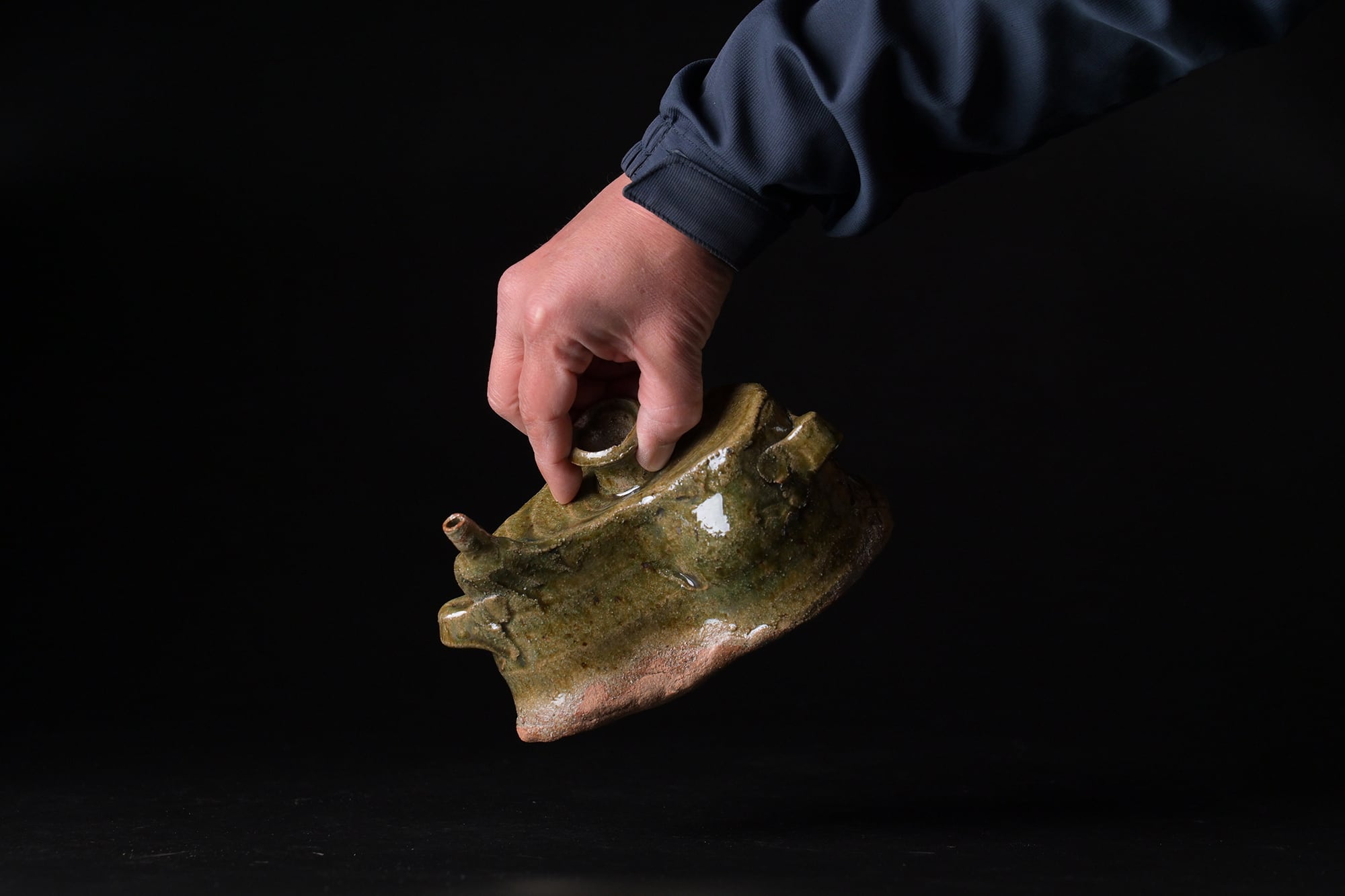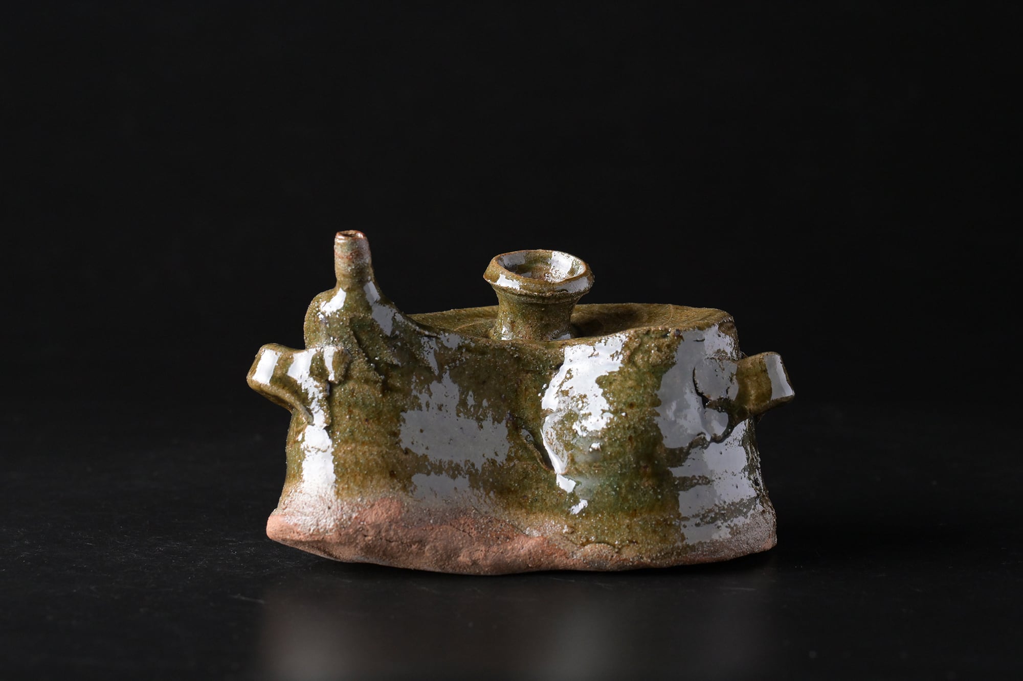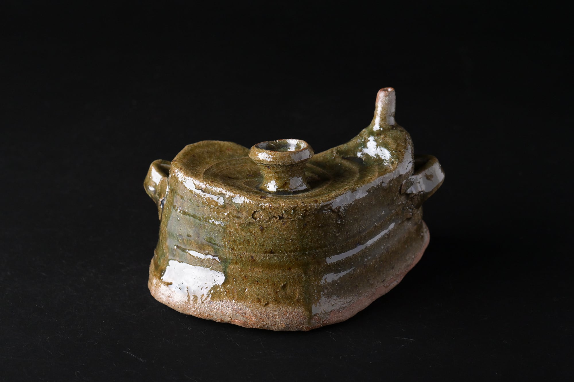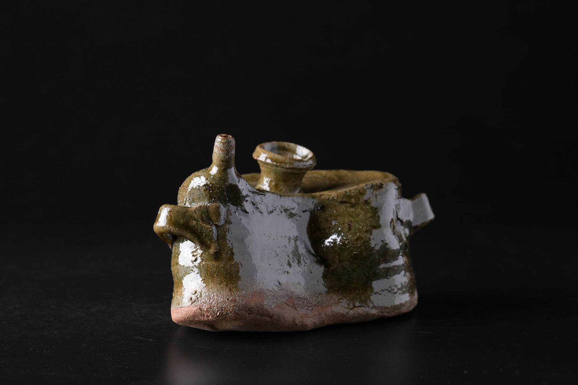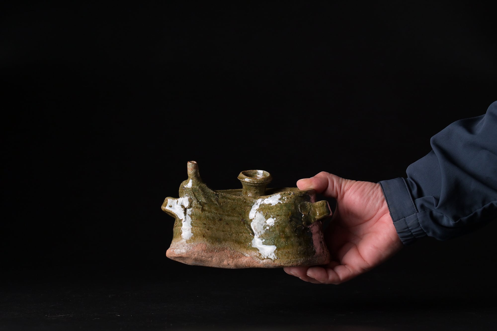 樽見浩 唐津大谷土 土練土 織部抱瓶 t21