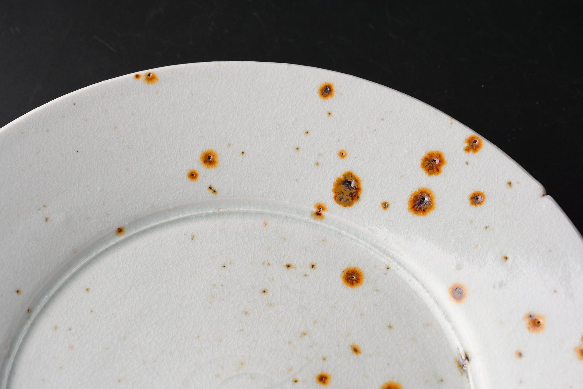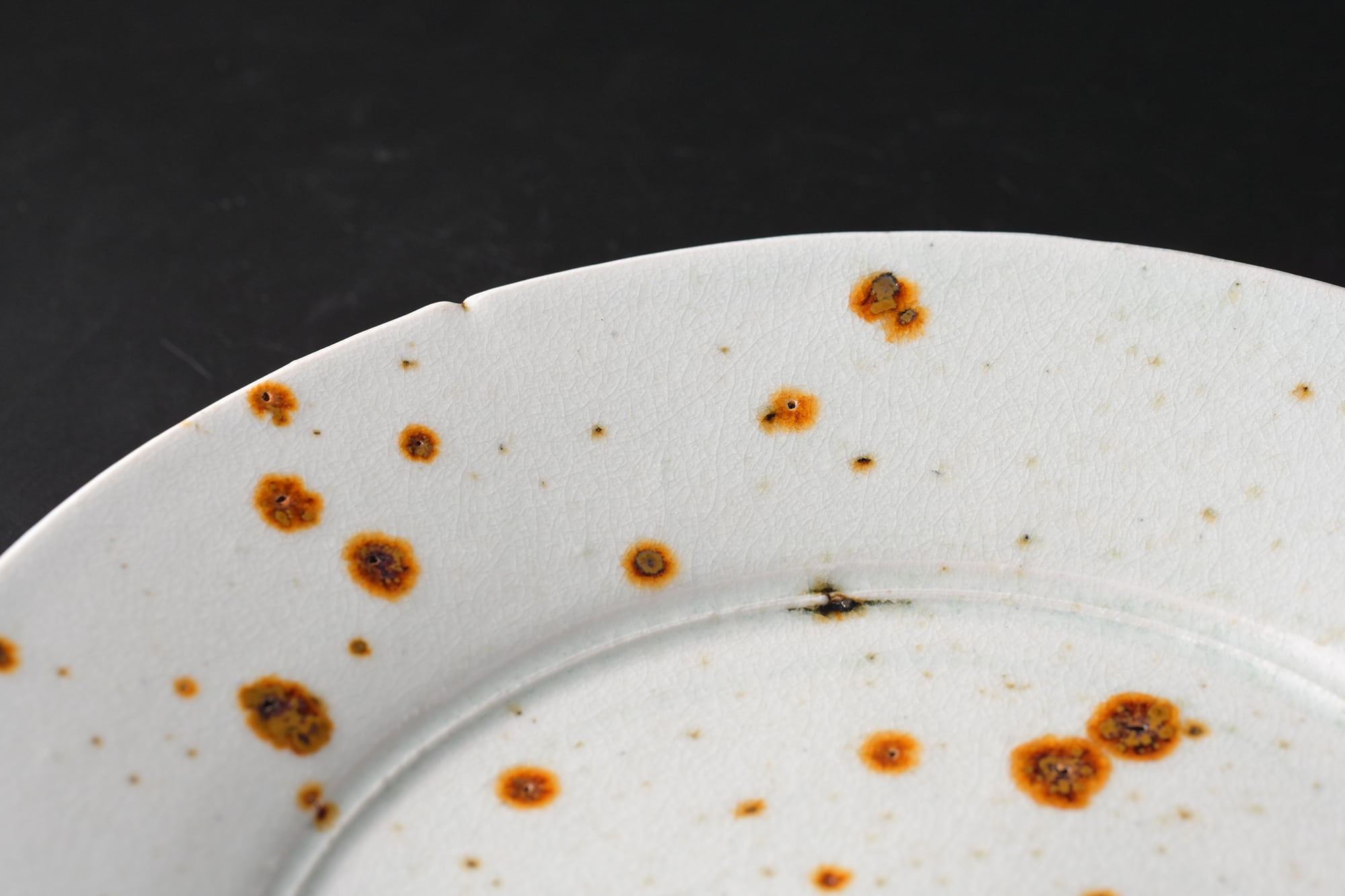 鉄点は、秋田の鉱山跡地で見つけた【からみ】と呼ばれる鉱物の残物を埋め込んで焼成されています。
