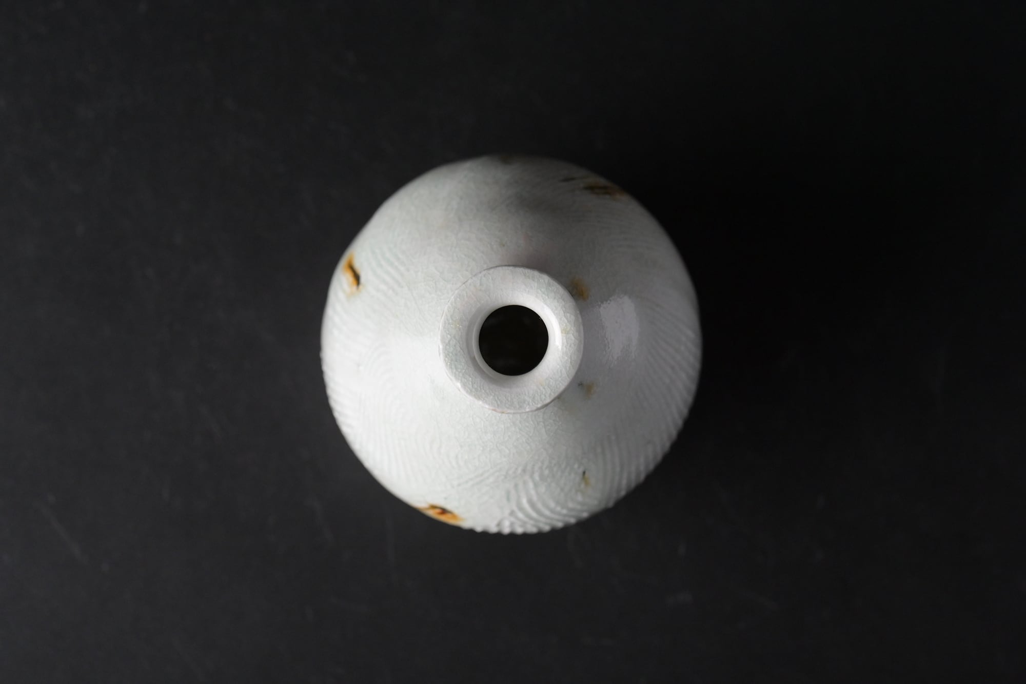 鉄点は、秋田の鉱山跡地で見つけた【からみ】と呼ばれる鉱物の残物を埋め込んで焼成されています。