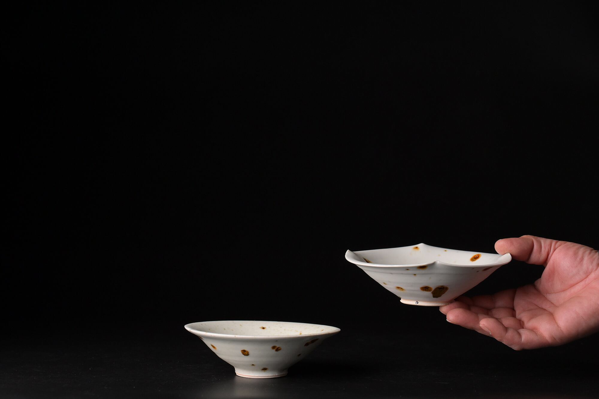 鉄点は、秋田の鉱山跡地で見つけた【からみ】と呼ばれる鉱物の残物を埋め込んで焼成されています。