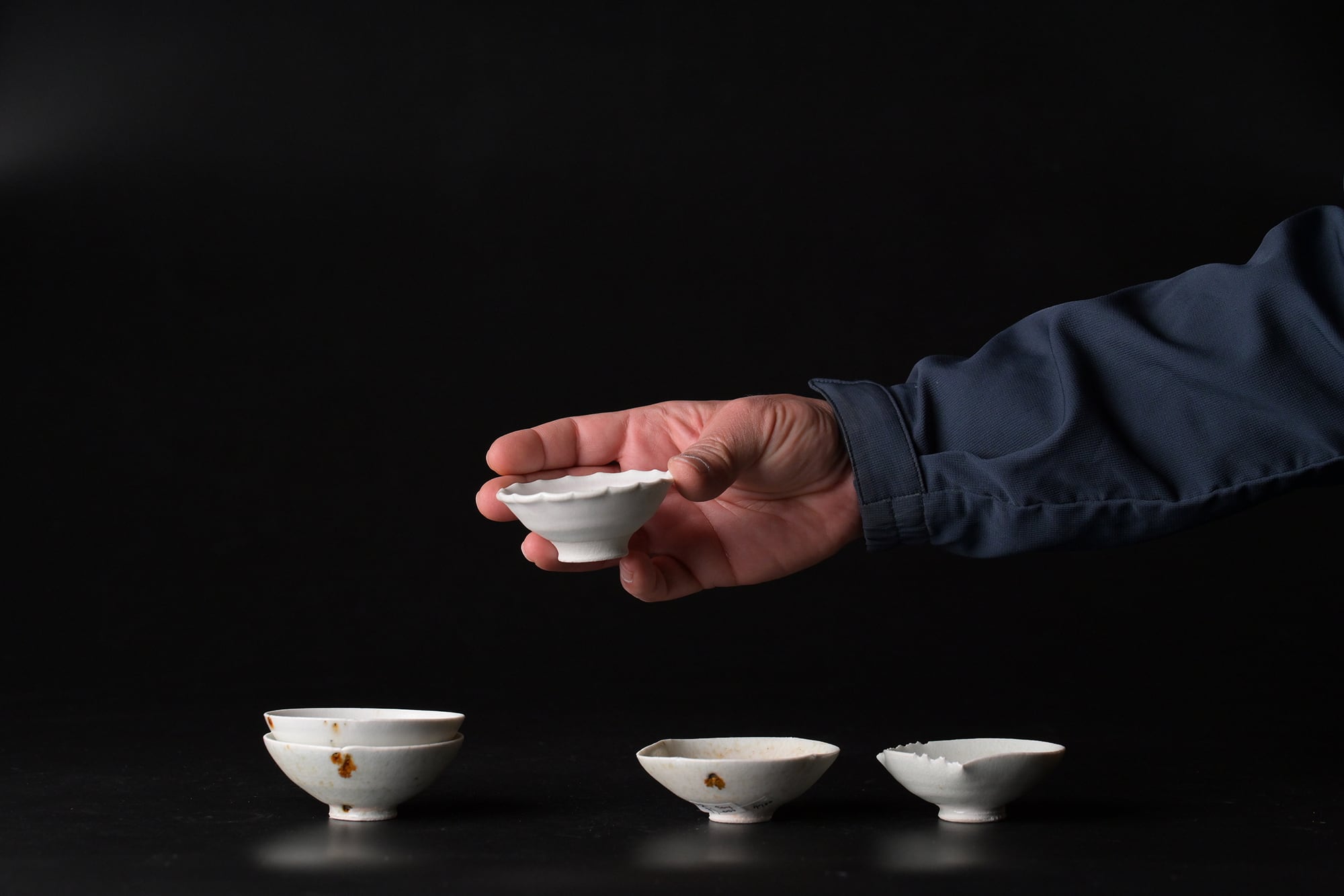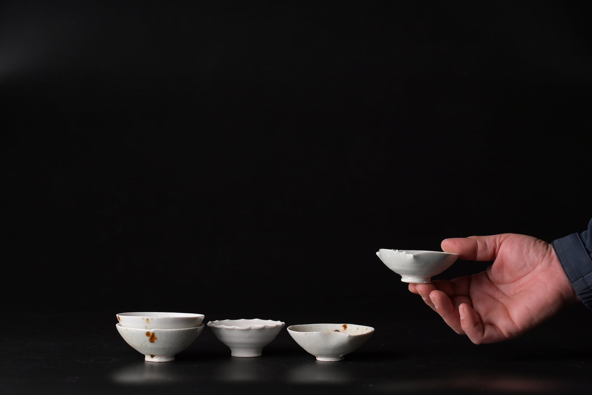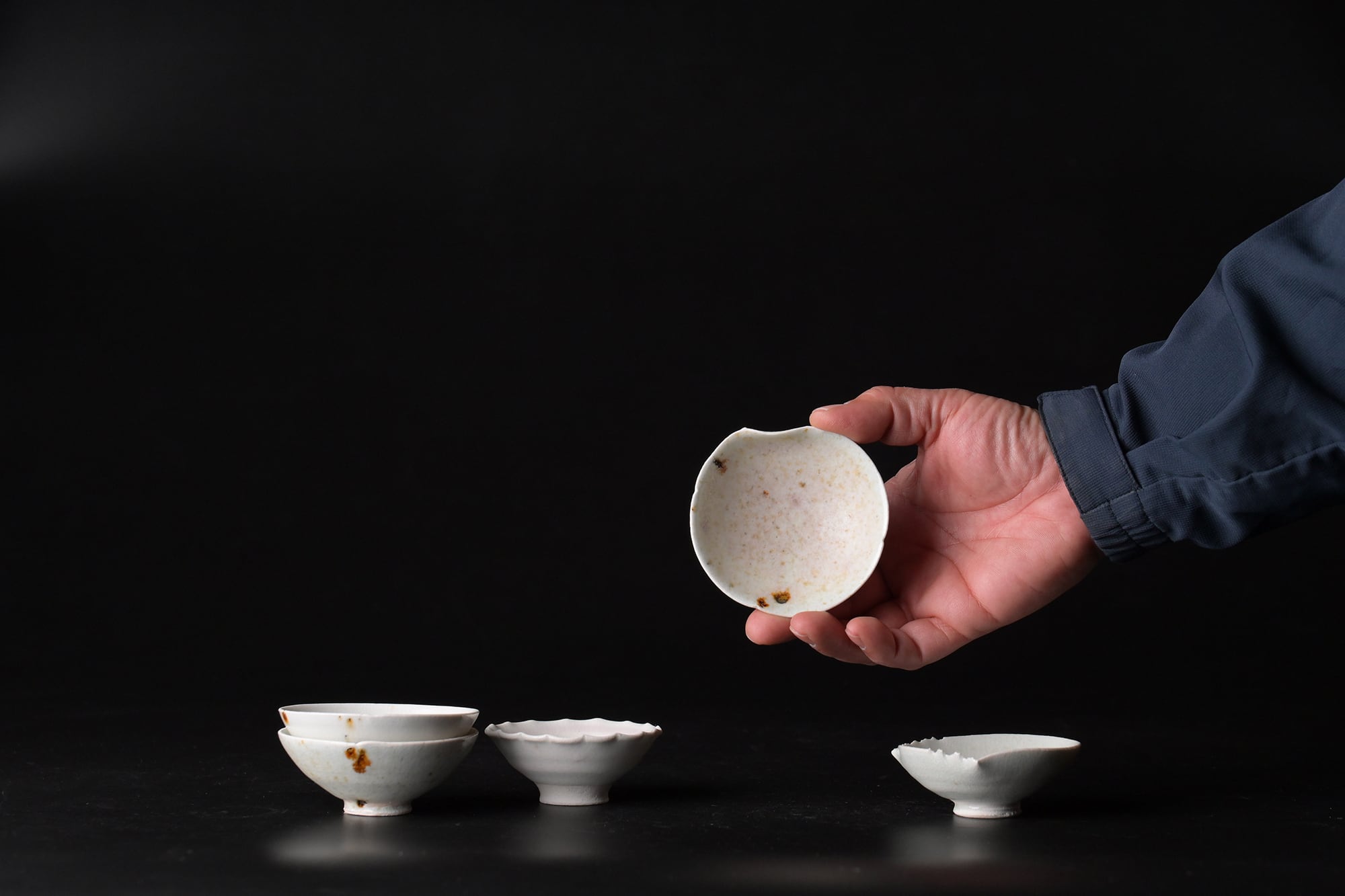 鉄点は、秋田の鉱山跡地で見つけた【からみ】と呼ばれる鉱物の残物を埋め込んで焼成されています。